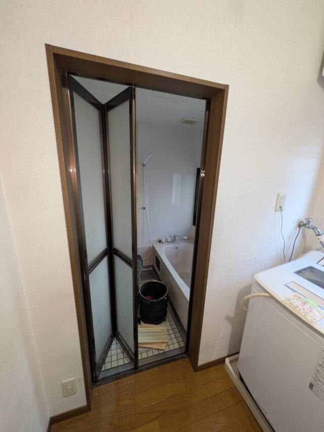 入り口が折戸だったのを引き戸に変更。