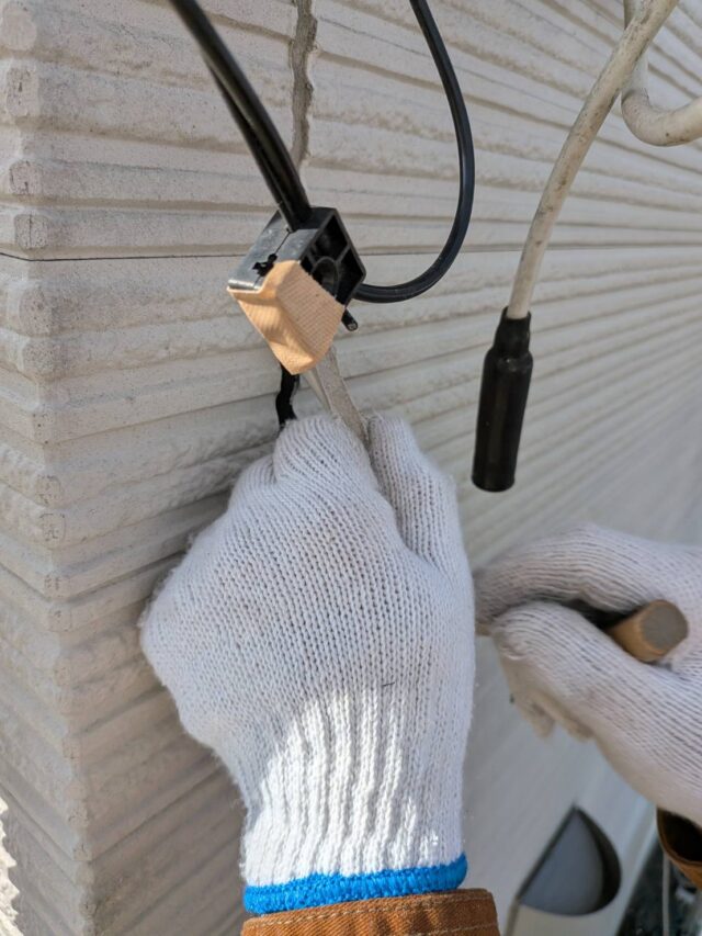 コーキングがしっかり付くようにプライマー処理をしてから充填していきます。