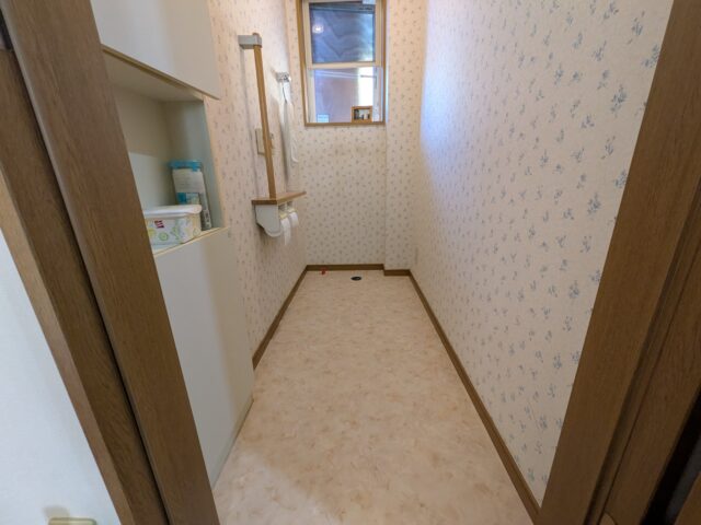 対策は、トイレマットを敷いて隠すか、床を貼り換えるかで解消する。